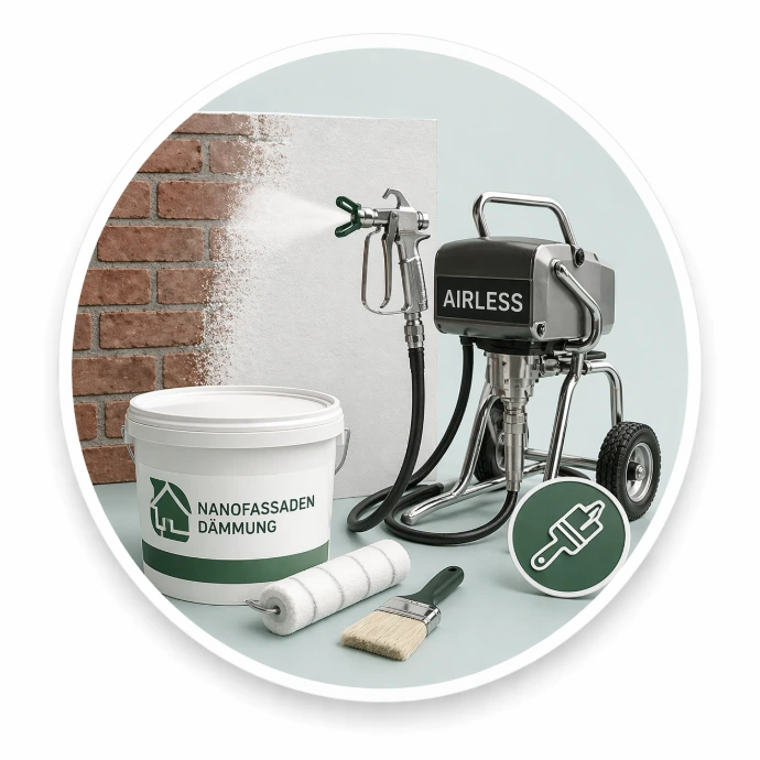 Die Dämmung wird in einem speziellen Sprühverfahren direkt auf die Oberfläche (z. B. Fassade, Kellerdecke, Rohrleitung) aufgebracht. Der Auftrag erfolgt fugenlos, schnell und ohne Abrissarbeiten.