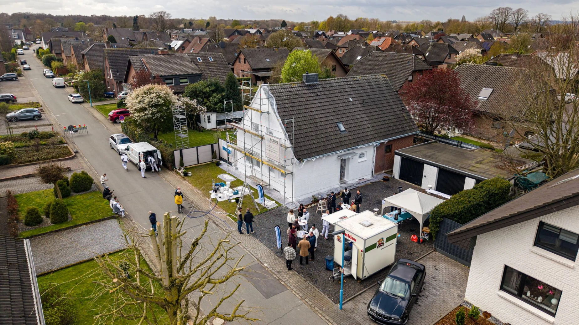 Im März 2026 haben wir ein Musterhaus in Bedburg-Hau mit Nanofassadendämmung gedämmt.
